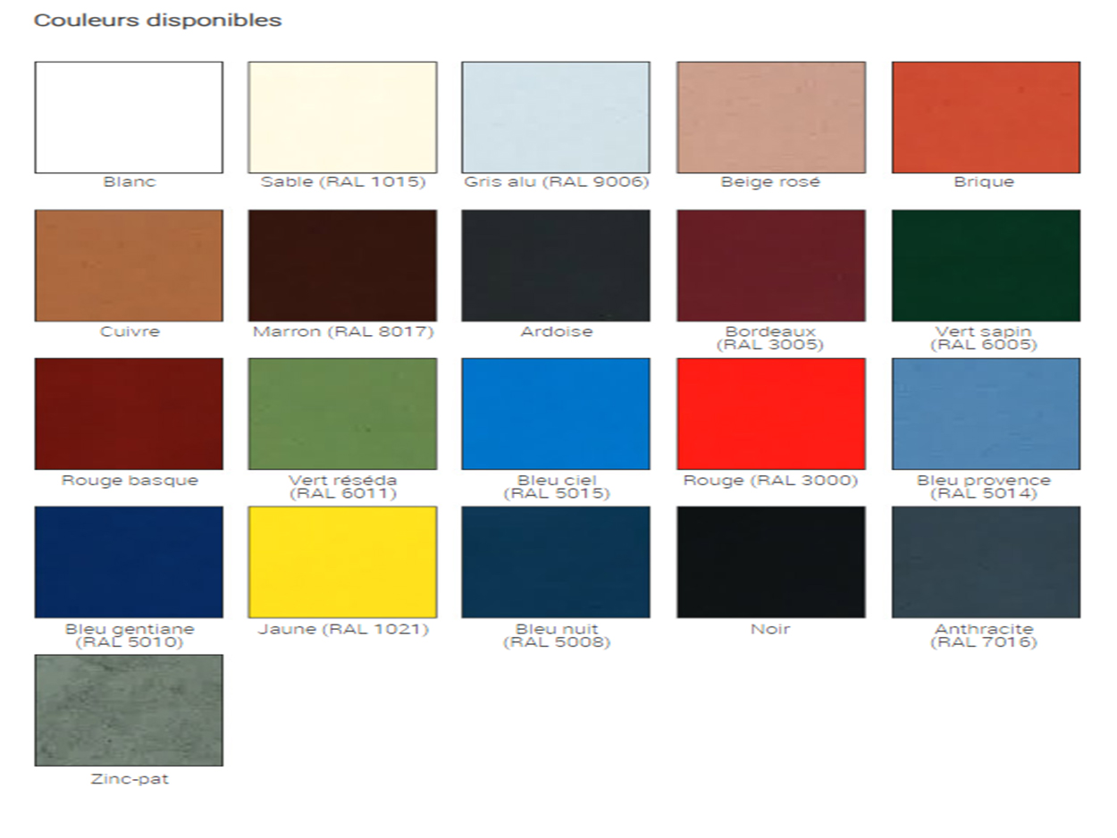 Nous pouvons vous proposer 3 styles de gouttières différentes et un choix de plus de 21 coloris.